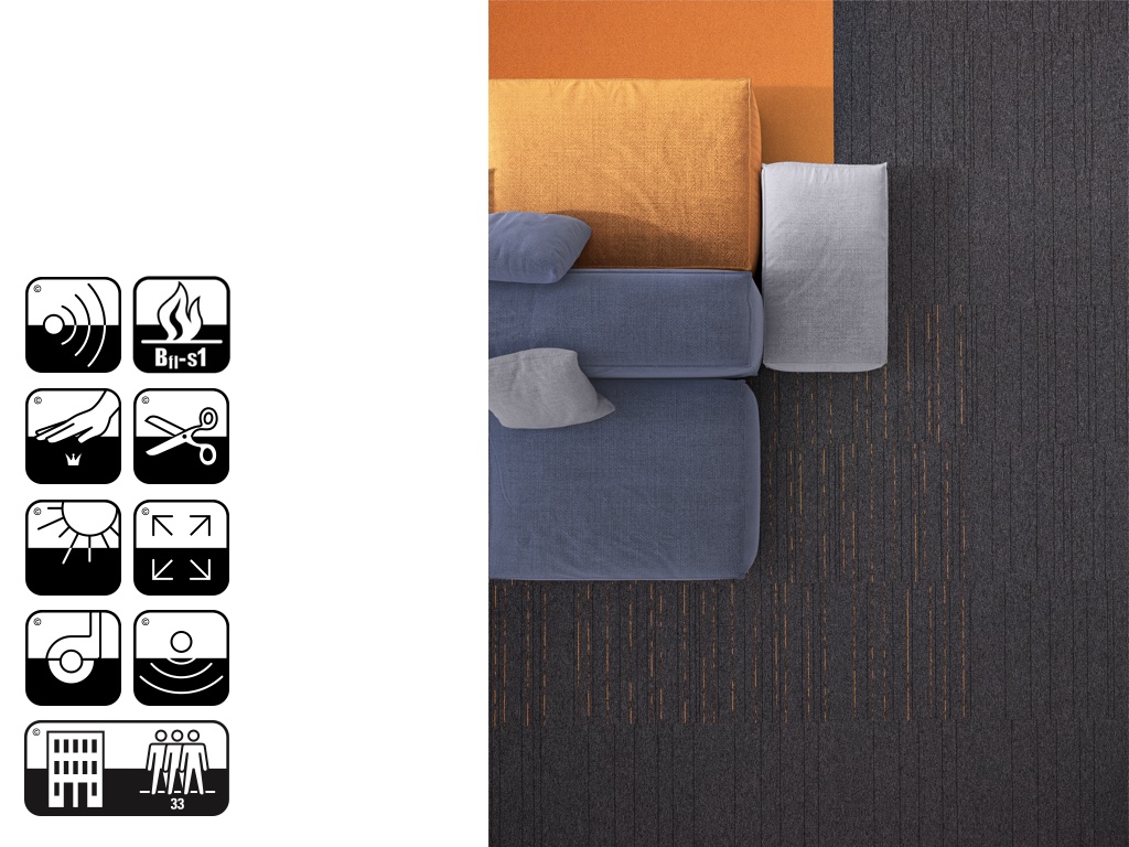 Modulyss First Straightline 966 – прочная ковровая плитка из 100% нейлона, произведенная в Бельгии. Она отличается высокой износостойкостью (класс 33), что делает её идеальной для коммерческих помещений с высокой проходимостью. Благодаря битумной основе и устойчивости к роликовым креслам, модульный ковролин отлично подходит для офисов, учебных заведений и гостиниц. Легкость в укладке и обслуживании добавляет удобства в эксплуатации.